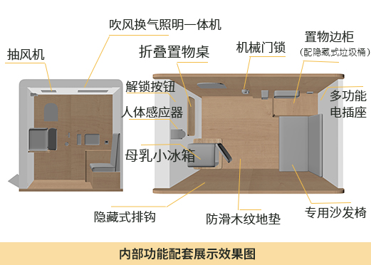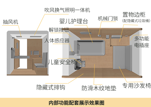 标准配套,为家长在公共场合进行婴儿照料提供独立舒适空间